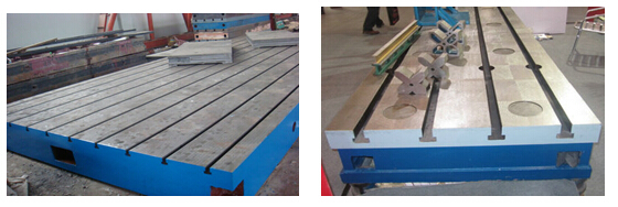 T型槽平臺(tái)(鑄鐵T型槽平板)的工作面采用刮削工藝,工作面上可加工V形、T形、U形槽和圓孔、長(zhǎng)孔等,可用來固定動(dòng)力機(jī)械設(shè)備。